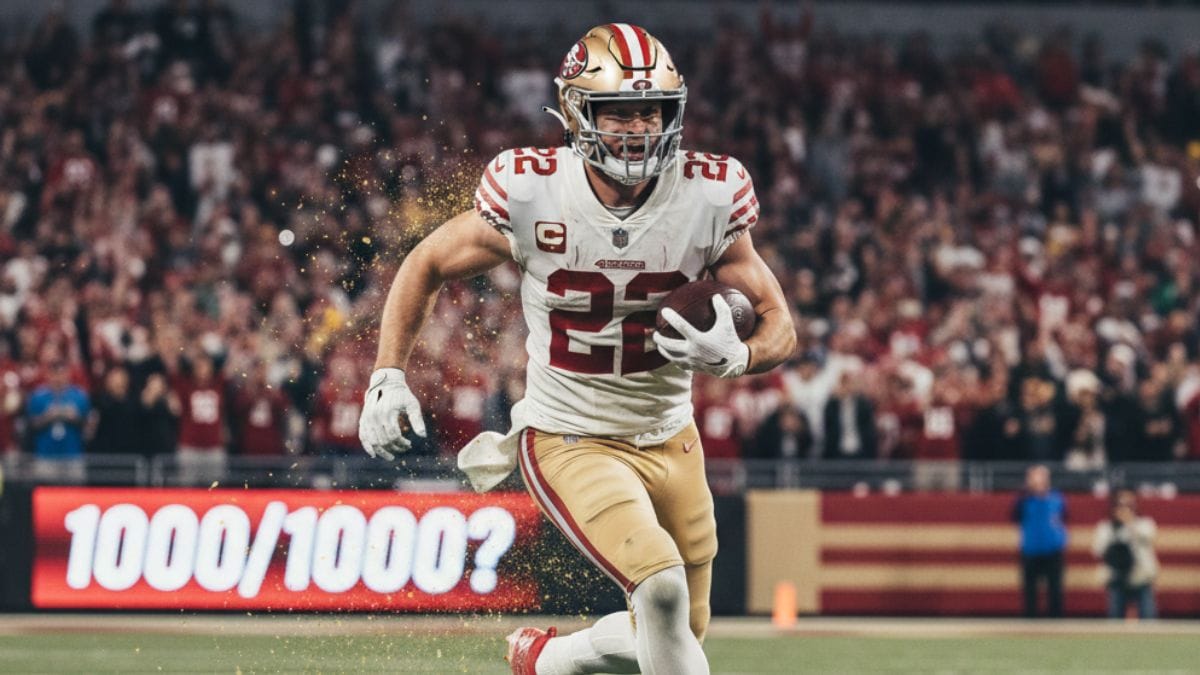 SAN FRANCISCO, December 28 – Christian McCaffrey is no longer just competing against opposing defenses; he is racing against history itself. With the 2025 season nearing its conclusion, the San Francisco 49ers’ superstar stands on the precipice of a statistical summit no NFL player has ever reached twice. The challenge is immense, but the reward is immortality: a second season with both 1,000 rushing yards and 1,000 receiving yards.