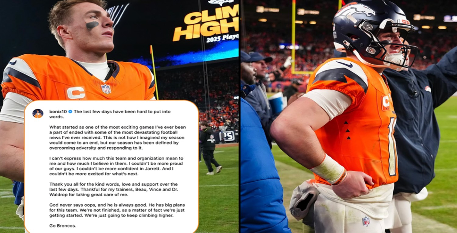 “The last few days have been hard to put into words… What started as one of the most exciting games I’ve ever been a part of ended with some of the most devastating football news I’ve ever received. This is not how I imagined my season would come to an end, but our season has been defined by overcoming adversity and responding to it… I couldn’t be more confident in Jarrett. God never says oops, and he is always good.” — Bo Nix, Denver Broncos Quarterback