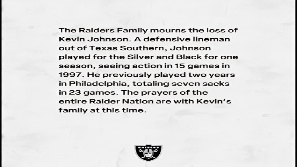 “The Raiders Family mourns the loss of Kevin Johnson. The prayers of the entire Raider Nation are with Kevin’s family at this time.” — Official Statement, Las Vegas Raiders